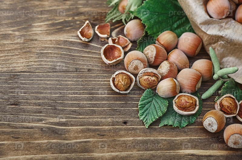 Орехи на деревянном столе