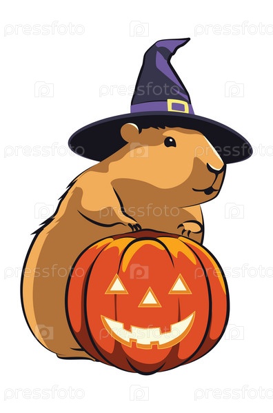 Морская свинка с тыквой на Хэллоуин