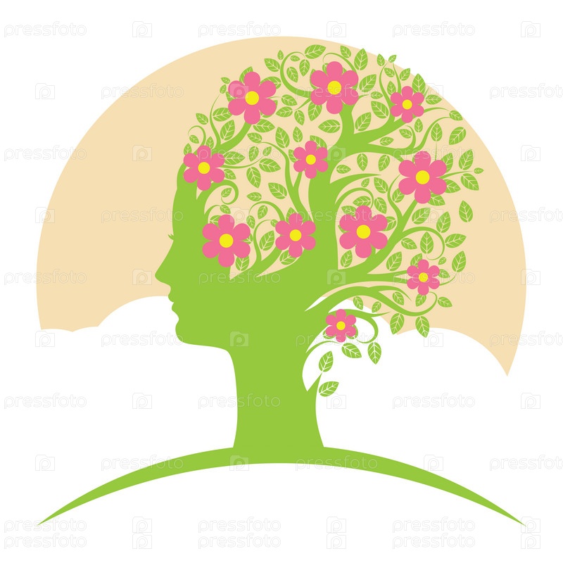 Весеннее дерево с силуэтом женской головы