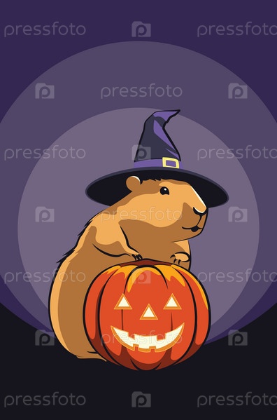 Морская свинка с тыквой на Хэллоуин