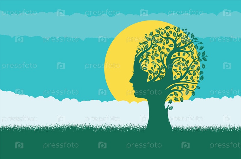 Дерево с женской головой и травой
