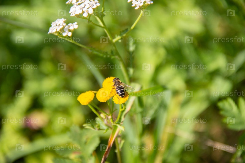 Пчелы на желтом цветке собирают нектар