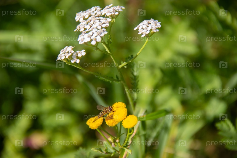 Пчелы на желтом цветке собирают нектар