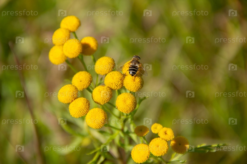 Пчелы на желтом цветке собирают нектар