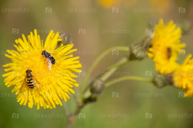 Пчелы на желтом цветке собирают нектар