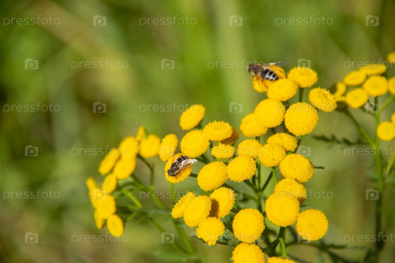Пчелы на желтом цветке собирают нектар