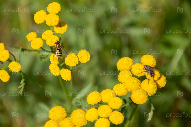 Пчелы на желтом цветке собирают нектар
