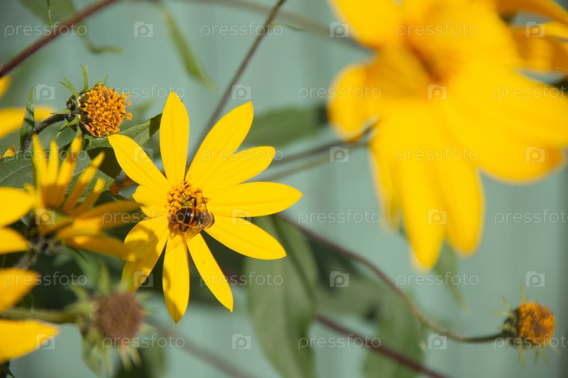 Фотография пчел, опыляющих желтые цветы
