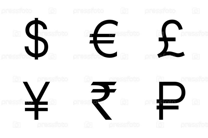 Основные валютные знаки доллар евро фунт иена рупия рубль. Вектор
