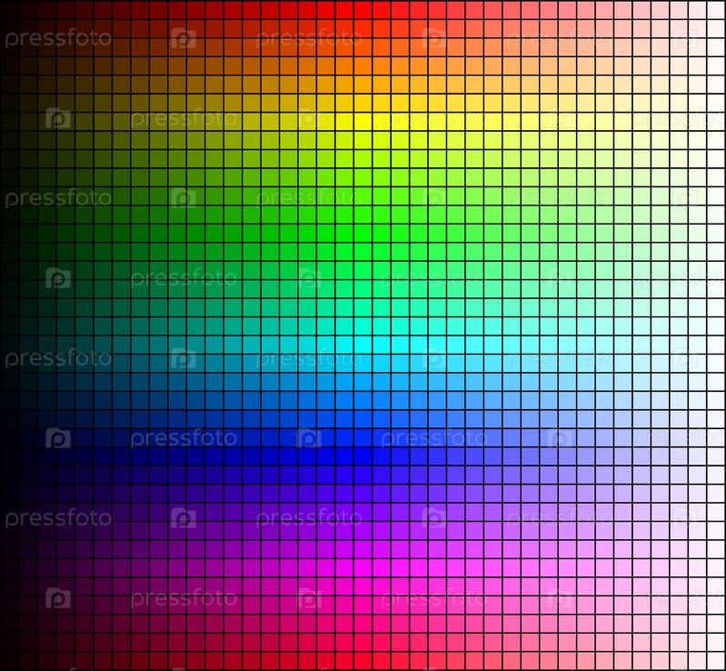 Мозаика цветового спектра, оттенок и яркость на черном фоне. Вектор