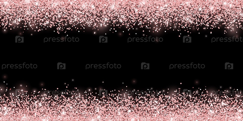 Блеск розового золота на черном фоне, широкая горизонтальная граница. Вектор