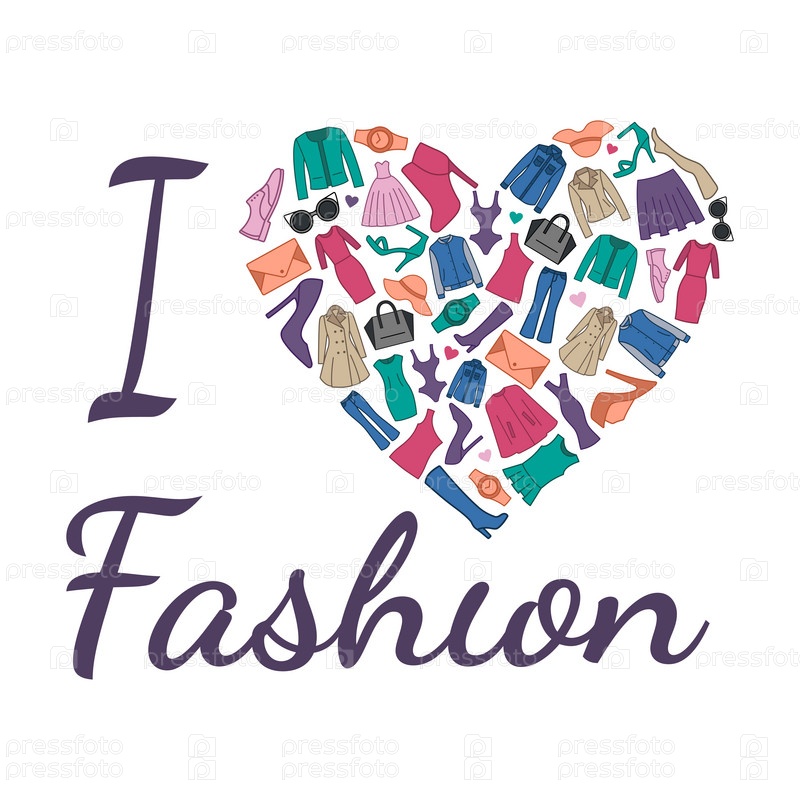 Я люблю модную иллюстрацию. Сердце состоит из модной одежды, обуви и аксессуаров