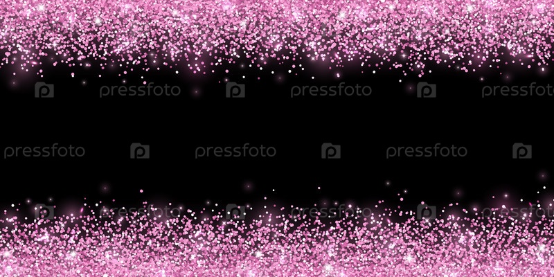 Розовые конфетти на черном фоне, широкая горизонтальная граница. Вектор