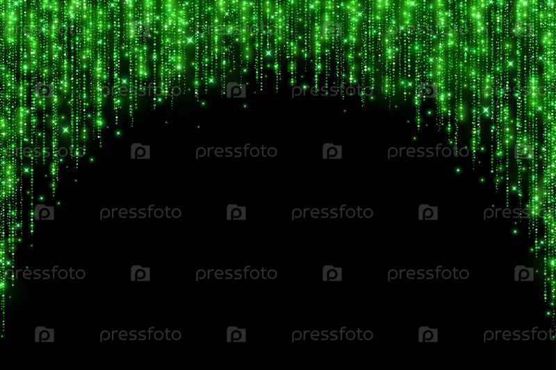 Зеленое праздничное украшение, круглая арка, блестящая гирлянда. Вектор