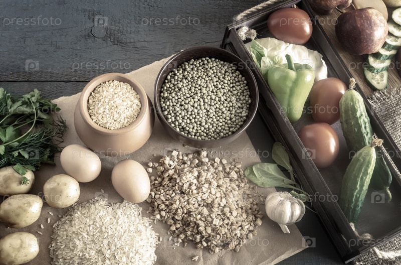 Ассортимент натуральных пищевых ингредиентов, концепция здорового питания
