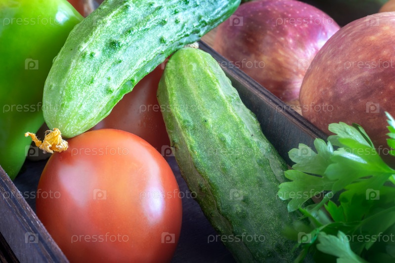 Свежие овощи и фрукты в маленькой коробочке