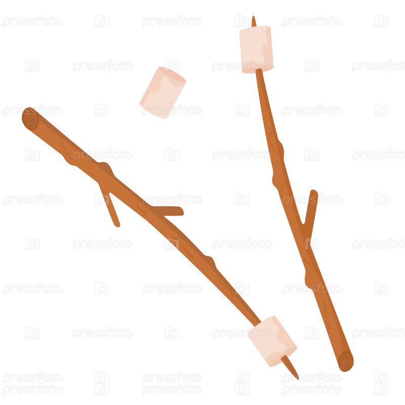 Пикник, походы, кемпинг, походы. Зефир на палочках для запекания на костре. Векторные иллюстрации в плоском стиле. Отдельный на белом фоне