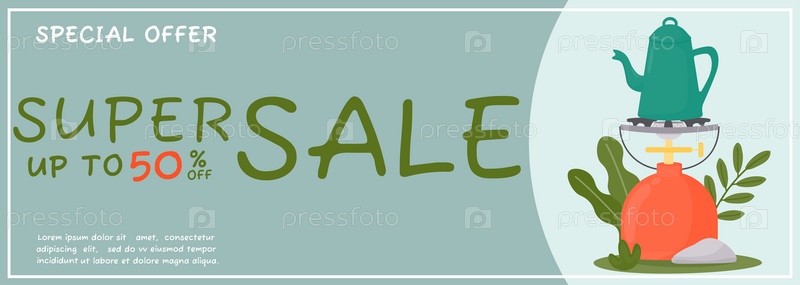 Рекламный баннер с изображением кемпинга. Летний кемпинг, путешествия, поездки, походы, туристы, природа, путешествия, концепция пикника. Векторная иллюстрация для плаката, баннера, листовки, обложки