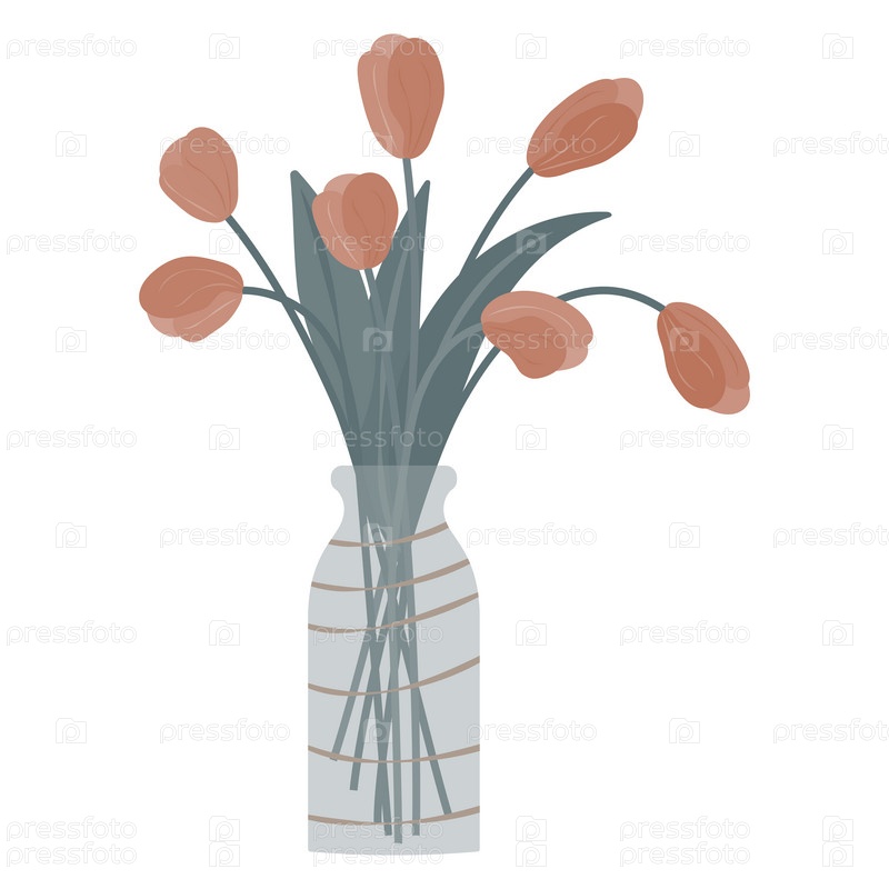 Цветы в вазе. Букет стилизованных растений в плоском стиле. Отдельный на белом фоне. Векторная иллюстрация
