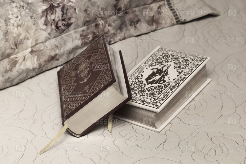 Две книги в красиво оформленных переплетах на диване