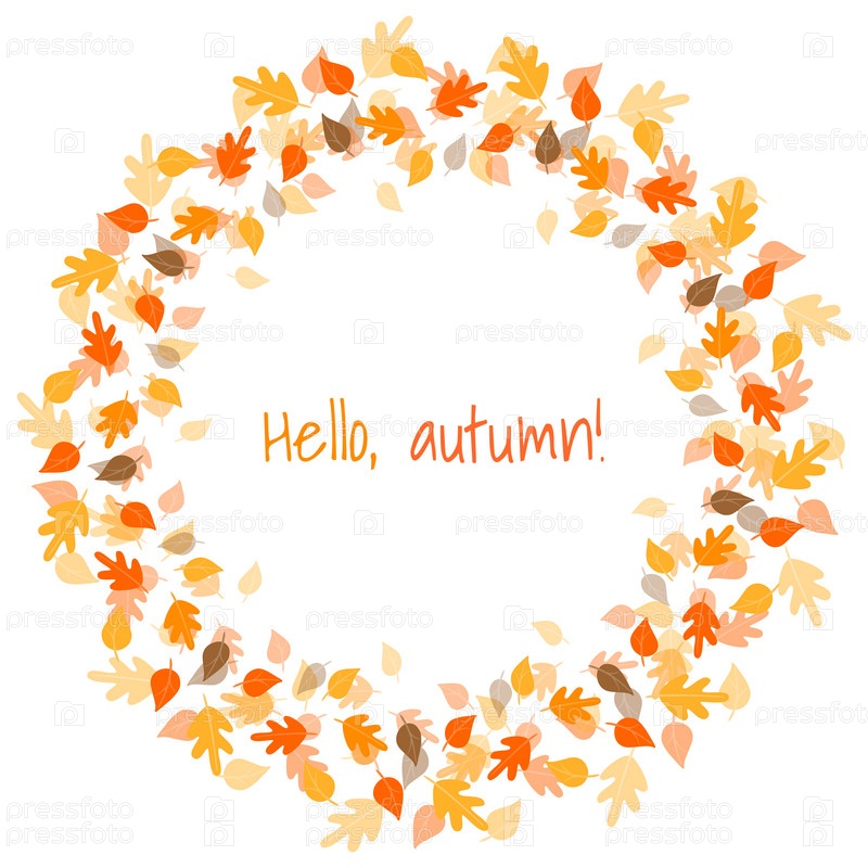 Венок из разноцветных осенних листьев. Привет осень. Векторные иллюстрации в плоском стиле