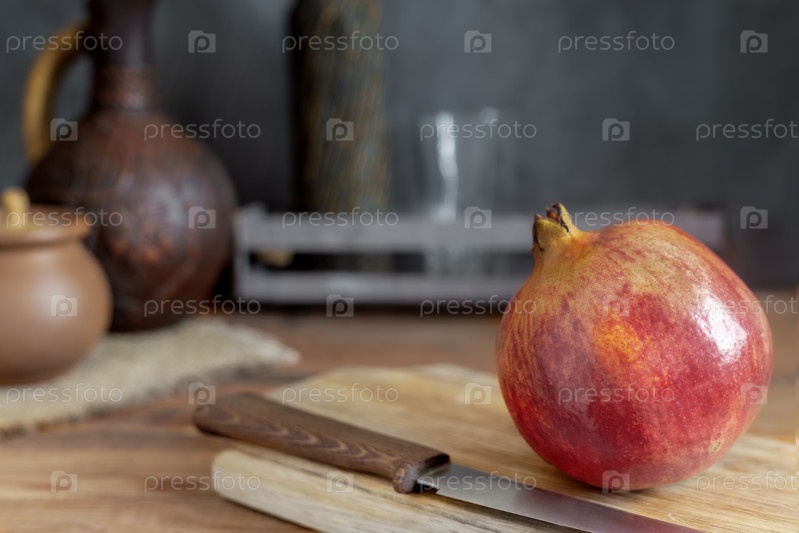 Спелый сочный фруктовый гранат на столе