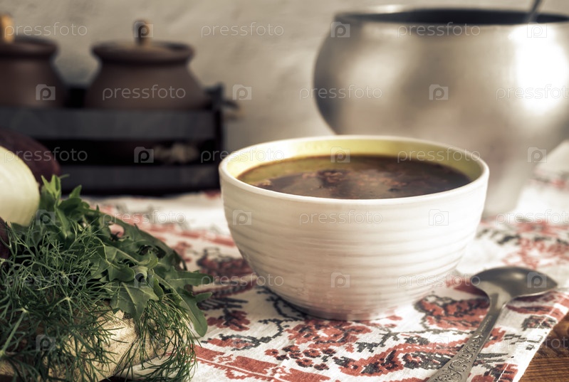 Украинский борщ, приготовленный в алюминиевом чугуне