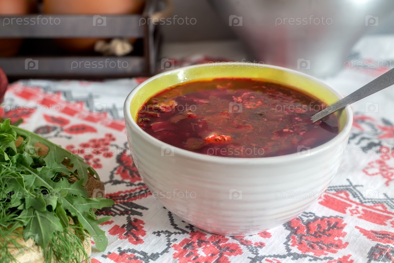 Украинский борщ, приготовленный в алюминиевом чугуне