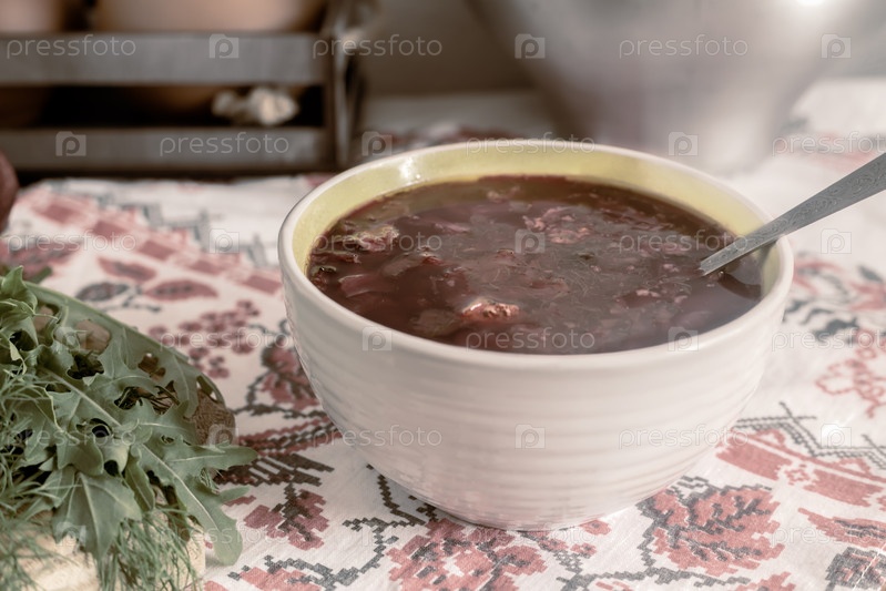 Украинский борщ, приготовленный в алюминиевом чугуне