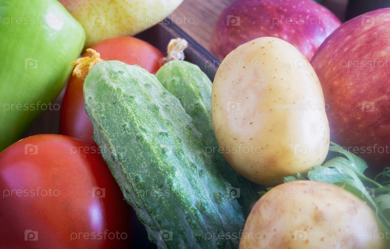 Свежие овощи и фрукты в маленькой коробочке