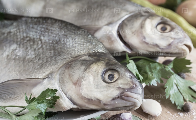 Крупная речная рыба лещ, приготовленная для жарки