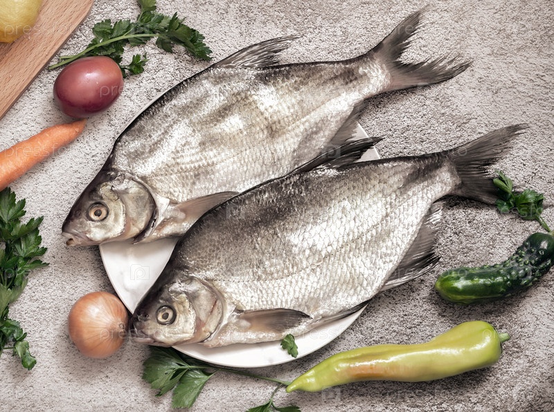Крупная речная рыба лещ, приготовленная для жарки
