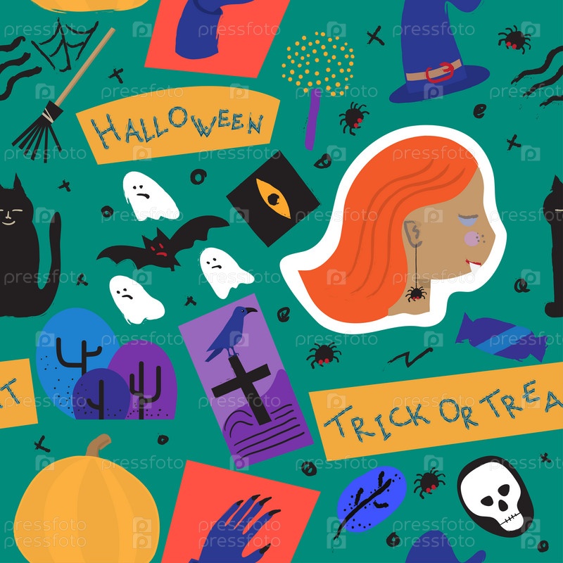 Счастливого Хэллоуина. Бесшовный фон для праздника Хэллоуина в мультяшном векторном стиле