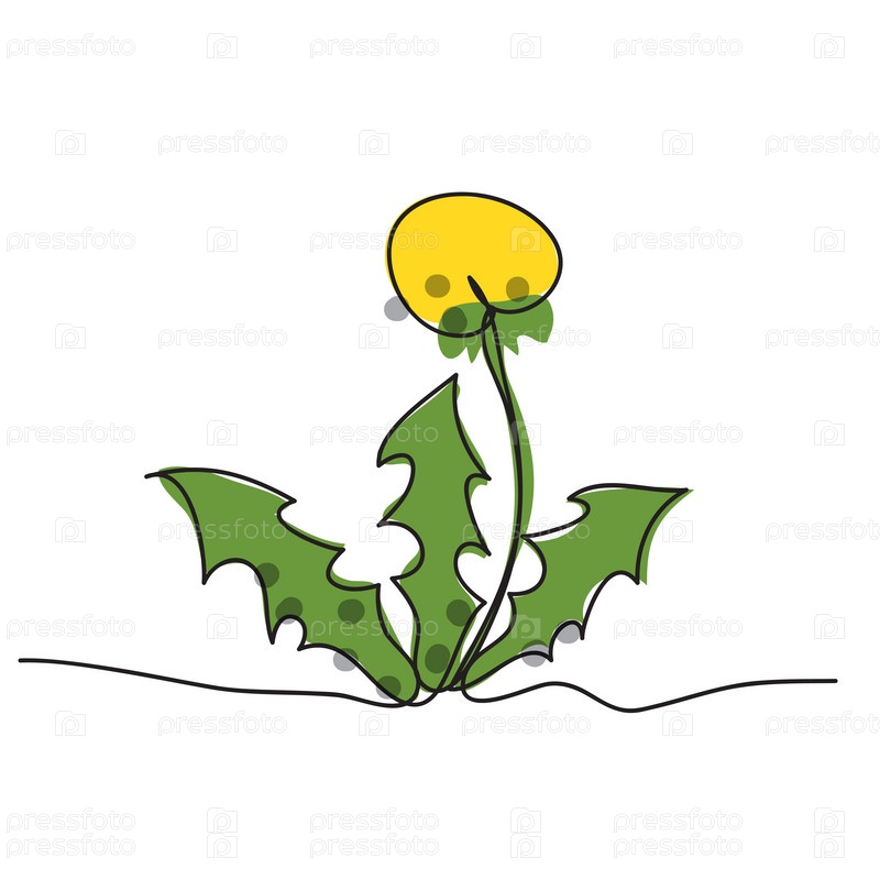 Ручной рисунок непрерывной линии сорняков одуванчиков