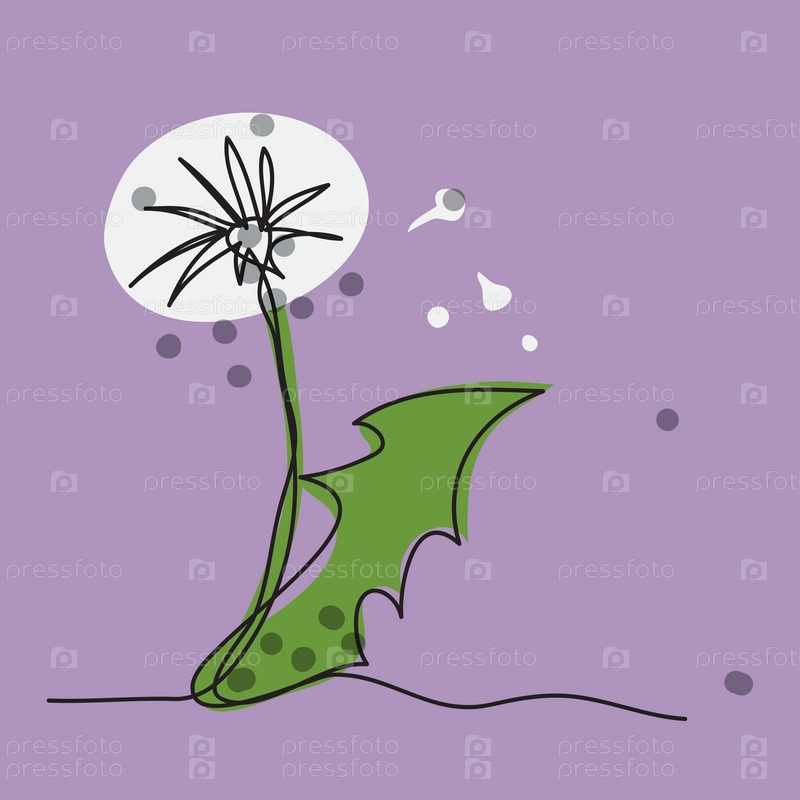 Ручной рисунок непрерывной линии сорняков одуванчиков