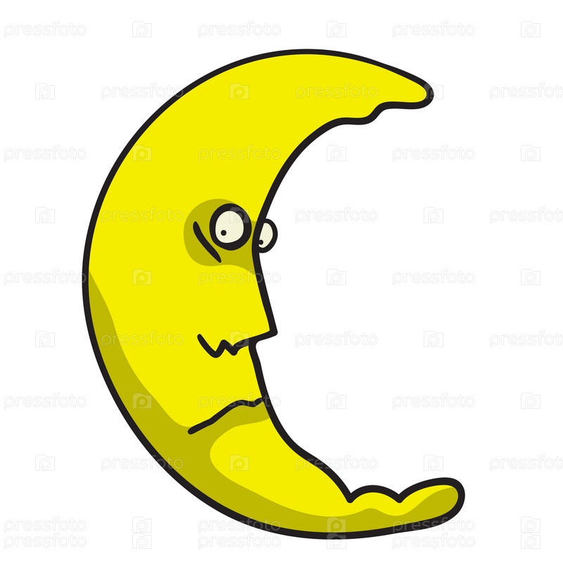 Печальная луна в космосе - изолированная на белом фоне иллюстрация