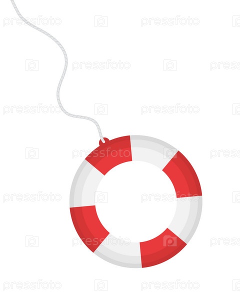 Плоская векторная иллюстрация на синем фоне, значок спасательного круга, финансовая помощь