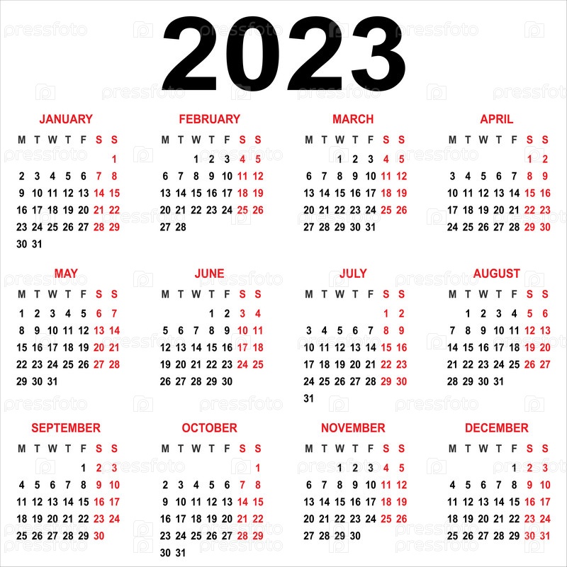 Календарь 2023. Неделя начинается в понедельник. Базовая сетка