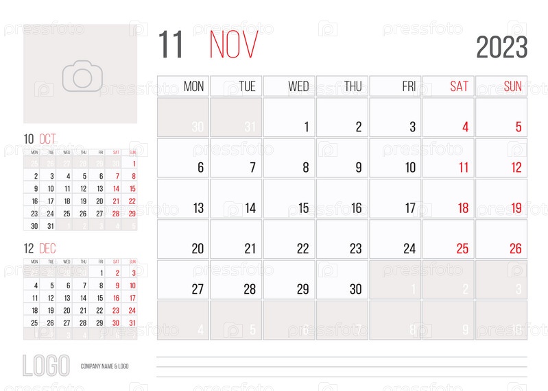 Планировщик календаря на 2023 год, корпоративный дизайн шаблона, месяц ноябрь