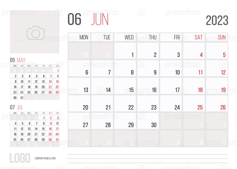Календарь на 2023 год, корпоративный дизайн шаблона, месяц июнь