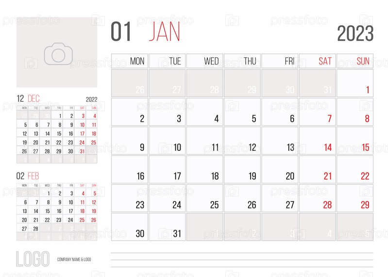 Планировщик календаря на 2023 год, корпоративный дизайн шаблона, месяц январь