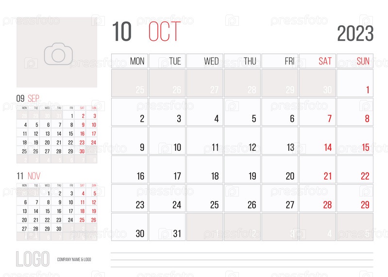 Календарь 2023 планировщик корпоративный дизайн шаблона месяц октябрь