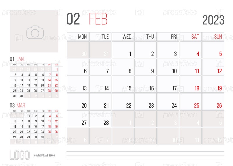 Планировщик календаря на 2023 год, корпоративный дизайн шаблона, месяц февраль