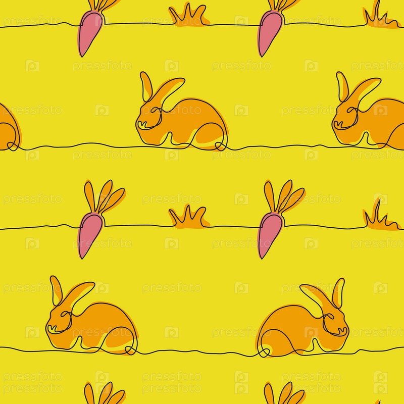 Бесшовный рисунок непрерывного рисунка одной линии Пасхального кролика