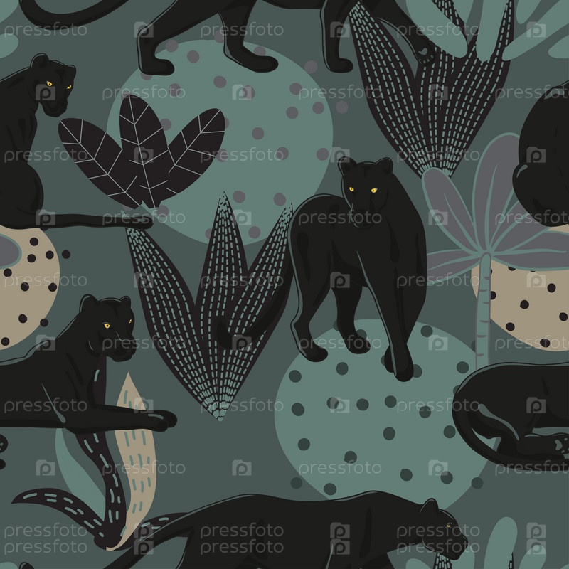 Тропические обои с черными пантерами в джунглях