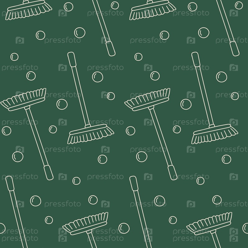 Бесшовный узор со шваброй и пузырьками на зеленом фоне