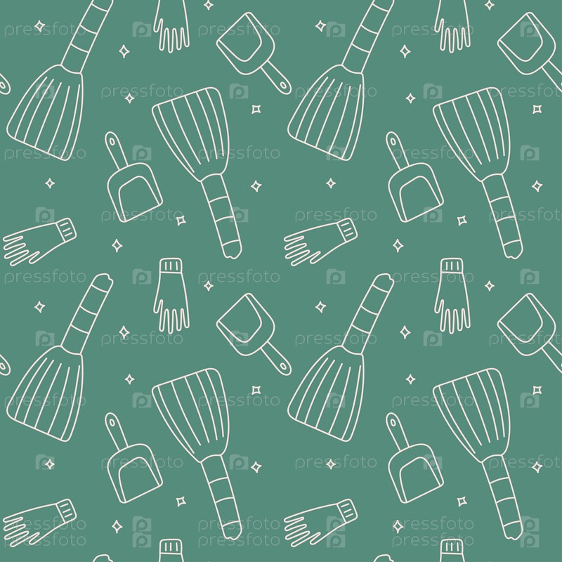 Бесшовный узор из метлы, совка, резиновой перчатки