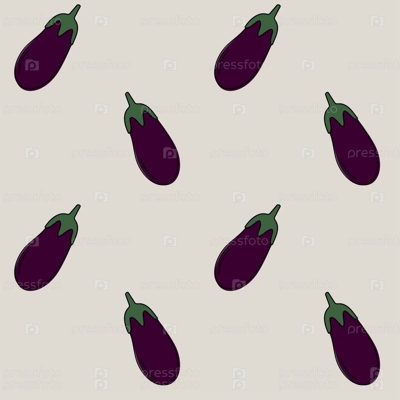 Бесшовный узор с баклажанами на светлом фоне. Красочные овощи в плоском стиле. Векторный фон