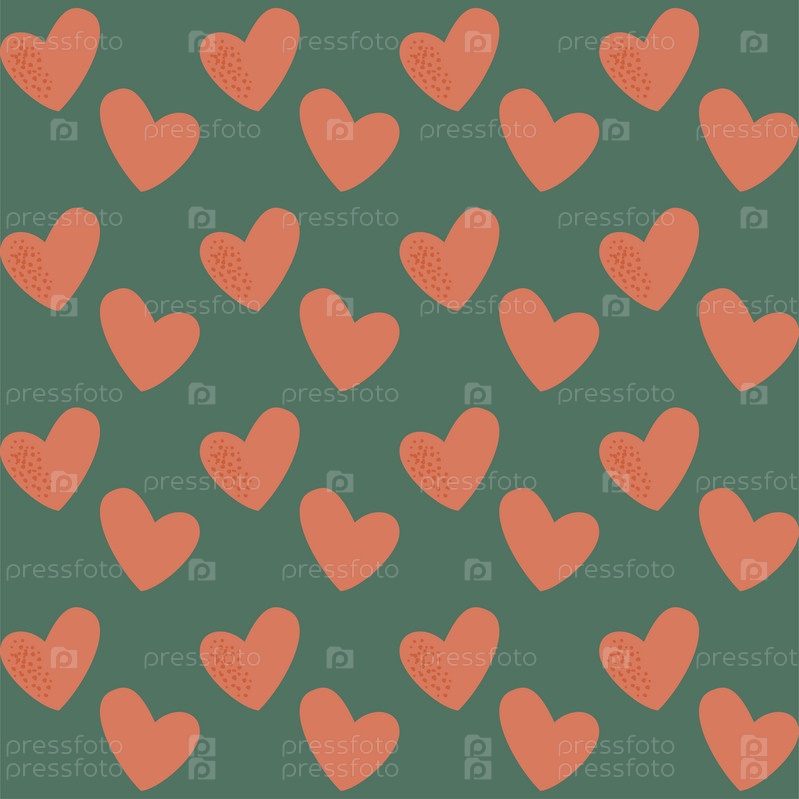 Бесшовный узор из сердец на зеленом фоне. Векторные иллюстрации в плоском стиле