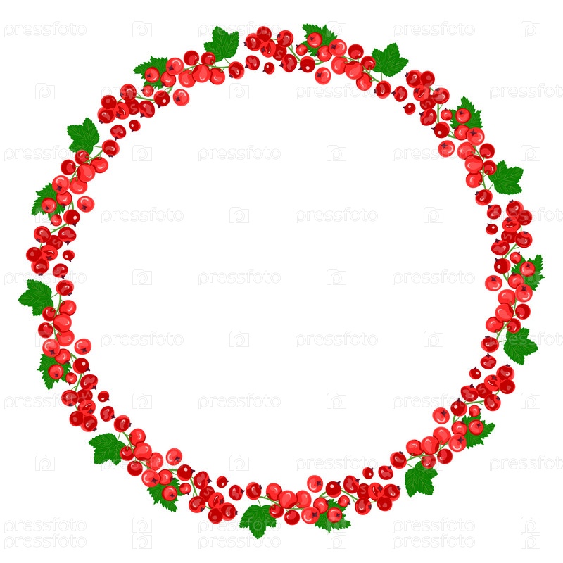 Круглая рамка из ягод красной смородины с зелеными листьями. Концепция здорового питания. Спелые ягоды. Сбор фруктов. Векторные иллюстрации в плоском стиле